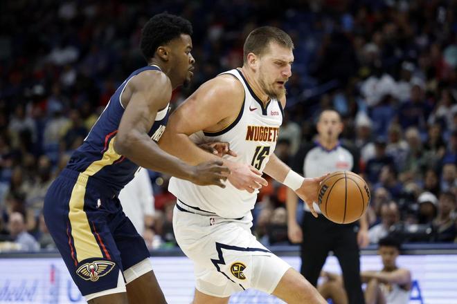 掘金上一场主场127-130惜败公牛结束7连胜,鹈鹕过去6场遭遇6连败位列西部倒数第一。本场掘金缺少戈登、斯特劳瑟与布劳恩,鹈鹕缺少穆雷、普尔与马特科维奇。首节开局掘金5-3领先,鹈鹕连得4分,穆雷三分命中取得2分优势。鹈鹕内外开花打出一波17-2攻势反超13分,掘金连追5分,掘金之后继续20-29落后。约基奇攻传结合引领一波6-0攻势追分,鹈鹕罚球再得1分,首节结束掘金26-30落后鹈鹕,约基奇6中4得到10+4+4,锡安5中3得到6分。